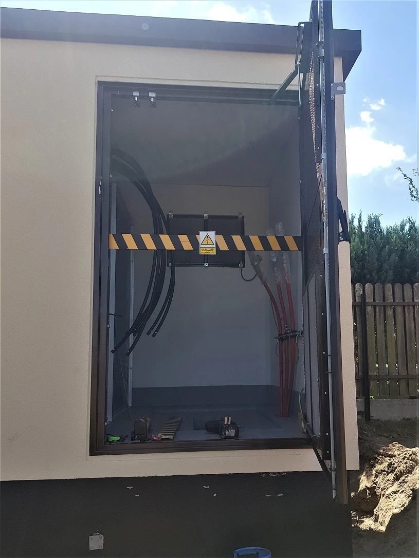 Przebudowa linii SN i nN to także budowa 2 stacji kontenerowych. Ich założeniem jest wymiana wszystkich urządzeń elektroenergetycznych na kompaktowe, mieszczące się w jednym budynku. Rozwiązanie to niweluje możliwość uszkodzeń powodowanych m.in. przez warunki pogodowe, ale także poprawia funkcjonalność stacji, zmniejszając powierzchnię zajmowaną przez oprzyrządowanie.