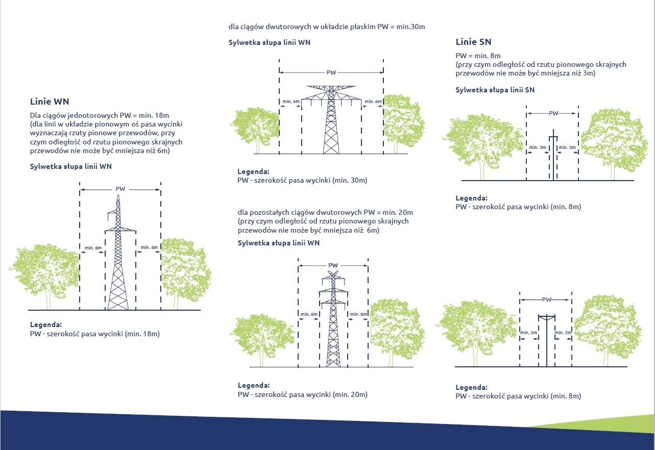 PGE Dystrybucja, pełniąc rolę Operatora Systemu Dystrybucyjnego, zgodnie z ustawą Prawo Energetyczne, jest odpowiedzialna za: prowadzenie ruchu sieciowego, bezpieczeństwo funkcjonowania systemu dystrybucyjnego, eksploatację, konserwację oraz niezbędną rozbudowę sieci elektroenergetycznej. Prowadzone wycinki minimalizują ryzyko awarii spowodowanych upadkiem lub zbliżeniem drzew i gałęzi do przewodów.