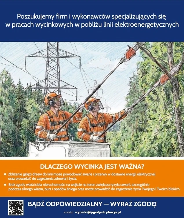 PGE Dystrybucja rozpoczyna akcję informacyjną mającą na celu uświadomienie lokalnej społeczności, jak istotne jest wyrażenie zgody właścicieli na wejście na teren ich nieruchomości i wykonanie niezbędnych prac eksploatacyjnych polegających na wycince zadrzewienia znajdującego się w pobliżu linii elektroenergetycznych. Mamy nadzieję, że dzięki niej wiele prac, które dzisiaj są mocno utrudnione, doczeka się w niedługiej przyszłości pozytywnego finału.