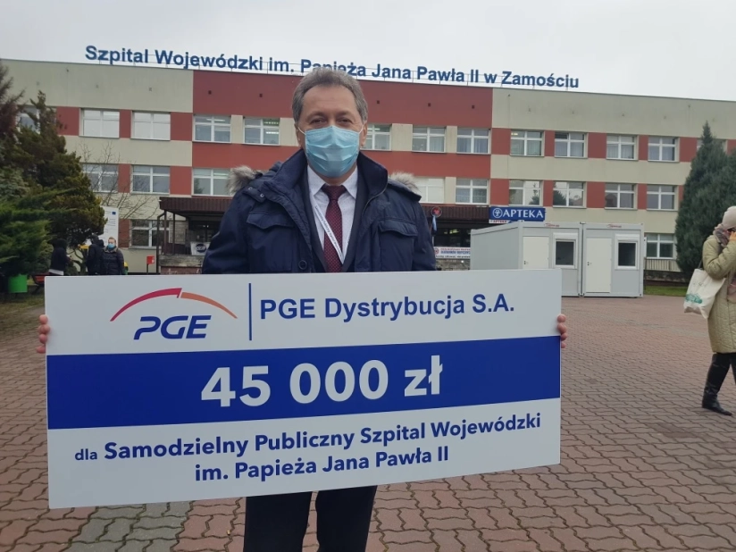 W ostatnich dniach PGE Dystrybucja przekazała Wojewódzkiemu Szpitalowi w Zamościu 45 tys. zł na zakup kontenera przeznaczonego do pobierania wymazów w kierunku obecności wirusa SARS-COV 2. W ten sposób spółka wspiera służbę zdrowia w walce z pandemią koronawirusa. Podobnej wysokości środki trafiły również do Samodzielnej Publicznej Stacji Pogotowia Ratunkowego i Transportu Sanitarnego w Zamościu z przeznaczeniem na zakup urządzeń dekontaminacyjnych wraz z zapasem biobójczego środka chemicznego. Znaczne środki finansowe, wspierające służbę zdrowia w walce z koronawirusem trafiły niedawno do Samodzielnego Publicznego Zespołu Opieki Zdrowotnej w Tomaszowie Lubelskim, gdzie zostały przeznaczone na dofinansowanie zakupu urządzenia do dezynfekcji pomieszczeń wraz ze środkami dezynfekującymi. Ponadto dofinansowaliśmy zakup karetki dla Samodzielnego Publicznego Zespołu Opieki Zdrowotnej w Szczebrzeszynie.