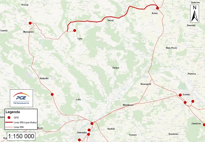 Zapewnienie bezprzerwowych dostaw energii elektrycznej jest możliwe tylko przy utrzymaniu odpowiedniego stanu technicznego infrastruktury elektroenergetycznej. W 2020 roku Oddział Warszawa finalizuje kolejną bardzo ważną inwestycję na wysokim napięciu (110 kV) i tym samym zamyka zaplanowany wiele lat wcześniej pierścień energetyczny obejmujący kolejno miejscowości Ostrołęka, Dylewo, Myszyniec, Łyse i Kolno.