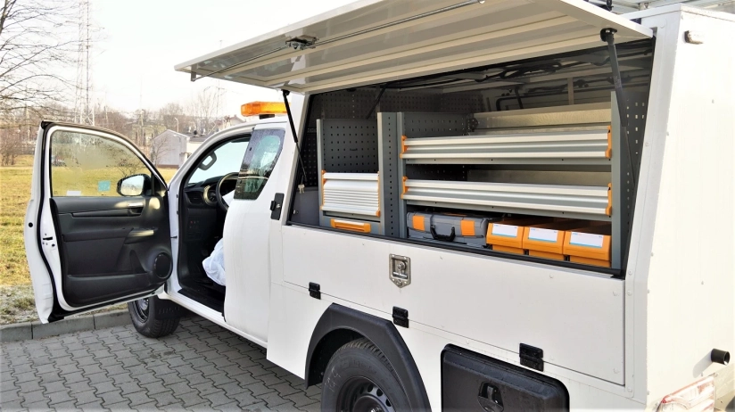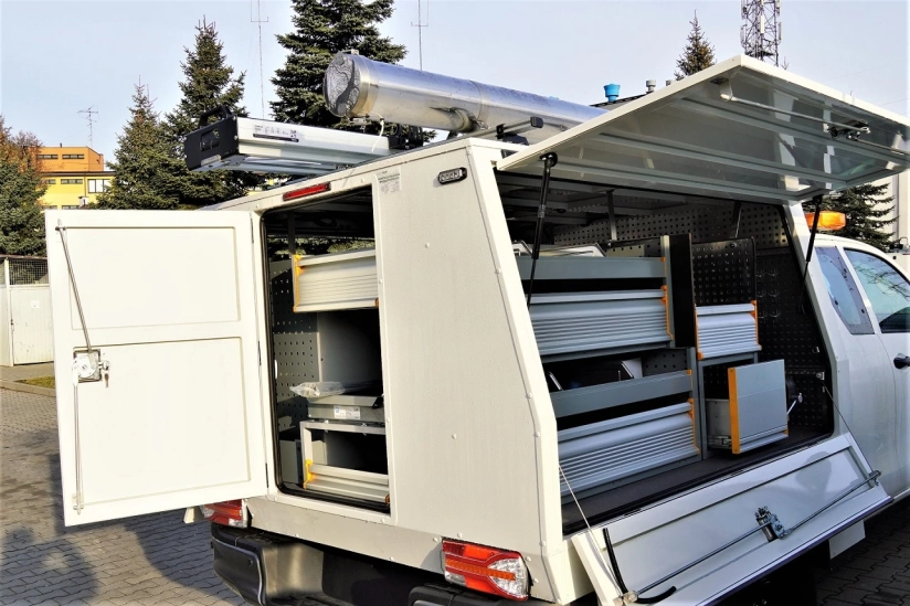Nowe pojazdy Pogotowia Energetycznego przebudowano tak, by sprostać wymaganiom spółki. Zostały wyposażone m.in. w specjalnie skonstruowaną, lekką zabudowę kontenerową osadzoną na niezależnej ramie. Wewnątrz kontenera umieszczono wysokiej klasy narzędzia niezbędne przy usuwaniu awarii. Urządzenia techniczne zostały umieszczone w dedykowanych im, wygodnych szafkach i boksach. Zastosowanie takich rozwiązań zapewnia łatwą organizację wyposażenia, optymalizację przestrzeni oraz gwarantuje bezpieczny i uporządkowany transport towarów w komorze ładunkowej.
