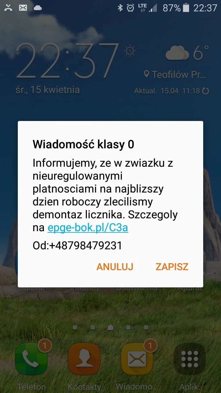 Nadawcy tych SMS-ów, wykorzystując trudną sytuację związaną z epidemią, podszywają się pod przedsiębiorstwa energetyczne. W przesyłanych SMS-ach znajduje się link prowadzący do strony łudząco przypominającej stronę logowania do elektronicznego Biura Obsługi Klient a stamtąd do strony z listą banków i systemu płatności elektronicznej. Są to fałszywe strony – wszystkich klientów prosimy o zachowanie szczególnej czujności i przekazywanie ostrzeżeń rodzinom i znajomym.