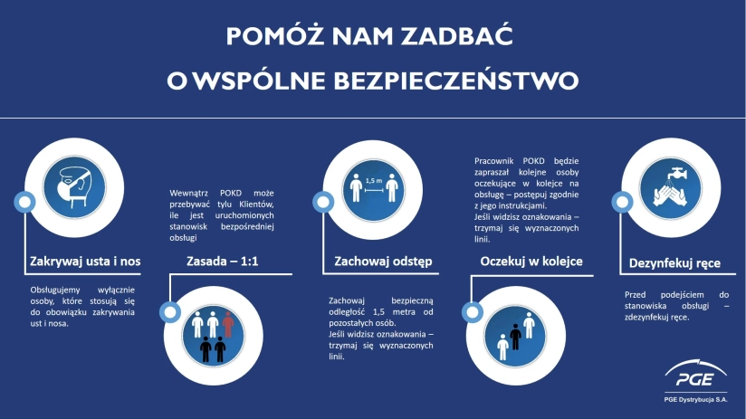 Dla zachowania bezpieczeństwa klientów i pracowników, PGE Dystrybucja wprowadza zasady obsługi zgodne z zaleceniami administracji państwowej: