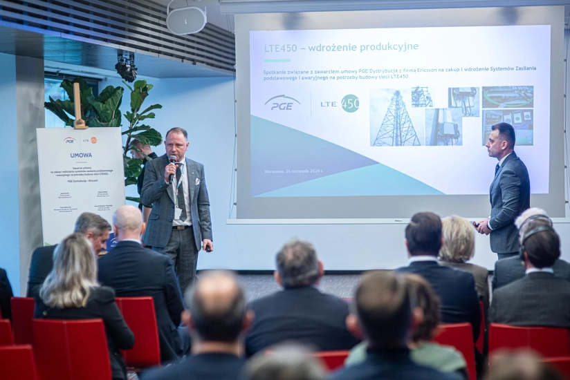 Transformacja energetyczna to nie tylko budowa nowych niskoi zeroemisyjnych mocy wytwórczych, ale również modernizacja i rozbudowa sieci dystrybucyjnej, w tym także jej cyfryzacja. Budowa sieci LTE450 zapewni skuteczną i bezpieczną komunikację cyfrową, dzięki czemu będziemy mogli lepiej i bezpieczniej zarządzać produkcją i dystrybucją energii, dbaćo ciągłość dostaw i szybciej lokalizować i eliminować ewentualne nieprawidłowości – powiedział Marcin Laskowski, Wiceprezes Zarządu ds. Regulacji PGE Polskiej Grupy Energetycznej. - Podpisana dzisiaj umowa na dostawę specjalnych systemów zasilania jest ostatnią umową na dostawę kluczowych składników sprzętu telekomunikacyjnego sieci LTE450. Już niedługo przejdziemy do kolejnego etapu projektu - uruchamiania stacji bazowych i zasięgu sieci LTE450 w terenie – dodał Marcin Laskowski.
