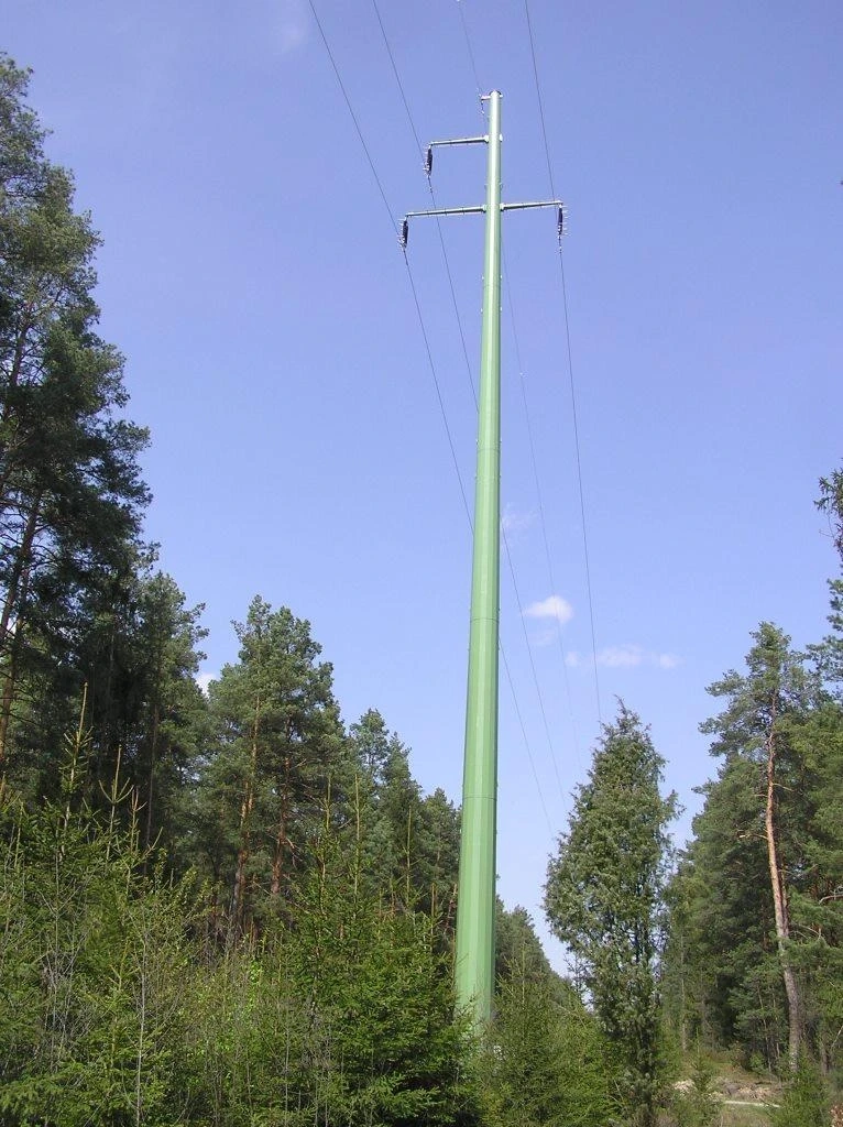 Wymagało to posadowienia słupów o wysokości około 50 m. Rozwiązanie to oraz pomalowanie konstrukcji słupów na kolor zielony zmniejsza ingerencję linii w piękny, roztoczański krajobraz.