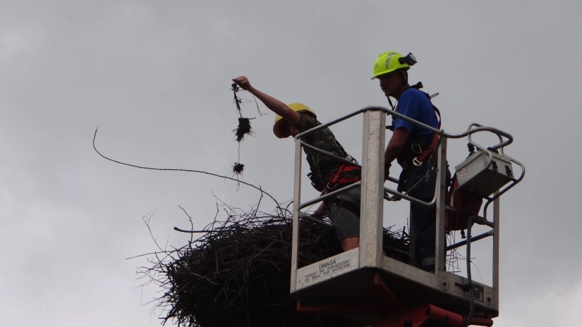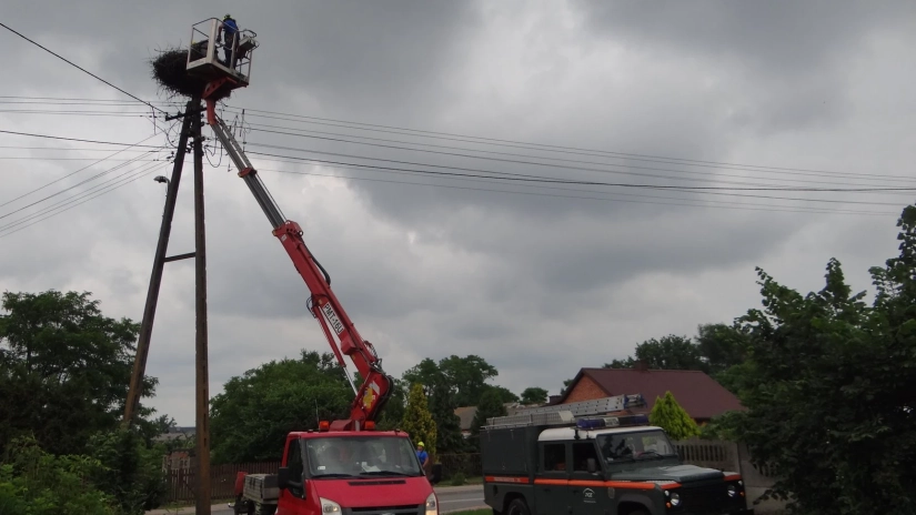 Śmiertelnym zagrożeniem dla nich są nie tylko linie energetyczne , ale również niefrasobliwie porzucane śmieci, m.in. sznurki czy żyłki. Współpraca naszej spółki z białostockim oddziałem Polskiego Towarzystwa Ochrony Ptaków, Grupą EkoLogiczną z Siedlec czy Stowarzyszeniem „Szansa dla Bociana” z Kozubszczyzny przynosi wymierne efekty – i to nie tylko w kontekście montażu platform pod bocianie gniazda. Wczoraj w miejscowości Baranów (powiat puławski) w ostatniej chwili uratowano młodego bociana zaplątanego w plastikowy sznurek. Ekologów zaalarmowali mieszkańcy Baranowa, którzy zauważyli, że coś niedobrego dzieje się w ptasim gnieździe. Na ratunek pospieszyli też pracownicy Wydziału Utrzymania Sieci z Rejonu Energetycznego Puławy. Przy użyciu podnośnika dostali się do gniazda, by ratować naszych skrzydlatych przyjaciół.